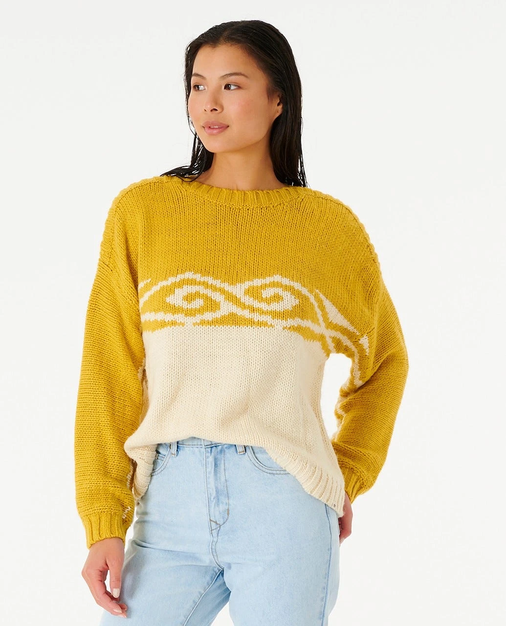 The Cosmic ll Sweater is a rad wintry pullover knit featuring intarsia design, thick ribbed cuffs, hem and neck, and iconic cosmic kiss pattern. Designed in a relaxed fit for that slightly looser width and casual vibe.