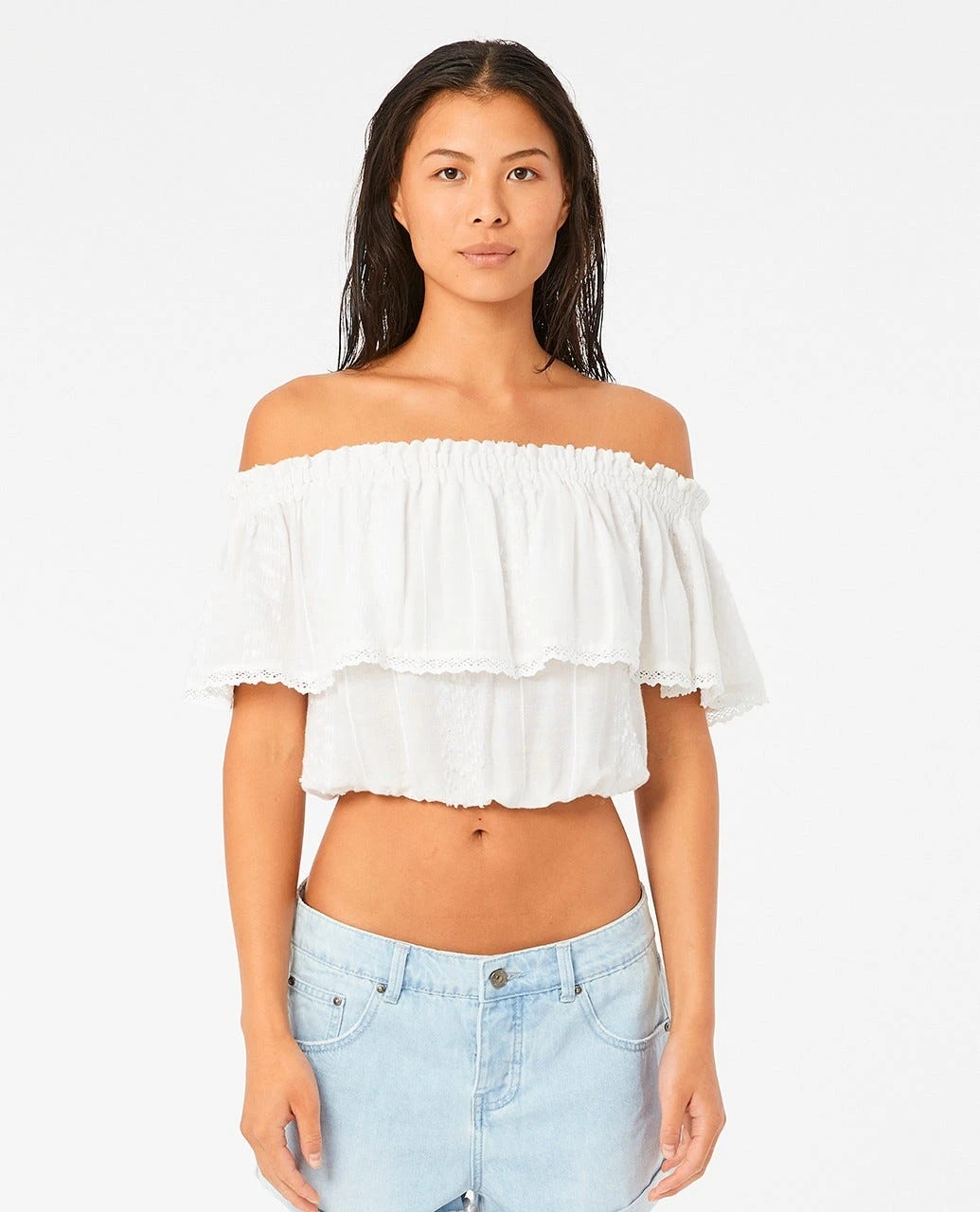 The Kokomo Top is a great women’s top with an elegant tiered design. Featuring a cropped fit, crotchet trim details, and a flowing fun vibe.