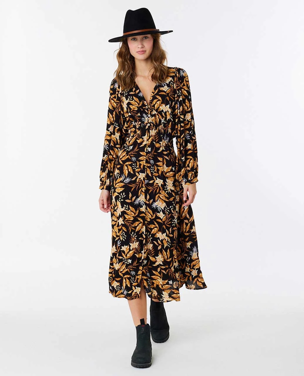 Step out in style with the La Isla Long Sleeve Midi Dress. Crafted from Ecovero viscose crinkle fabric, this standard fit dress combines comfort and fashion. The all-over yardage print adds a vibrant and playful element, while the button-through design with tortoise shell buttons creates a chic and trendy look. With its smocking detail for added texture and adjustable straps for a customizable fit, the La Isla Long Sleeve Midi Dress is perfect for any occasion.
