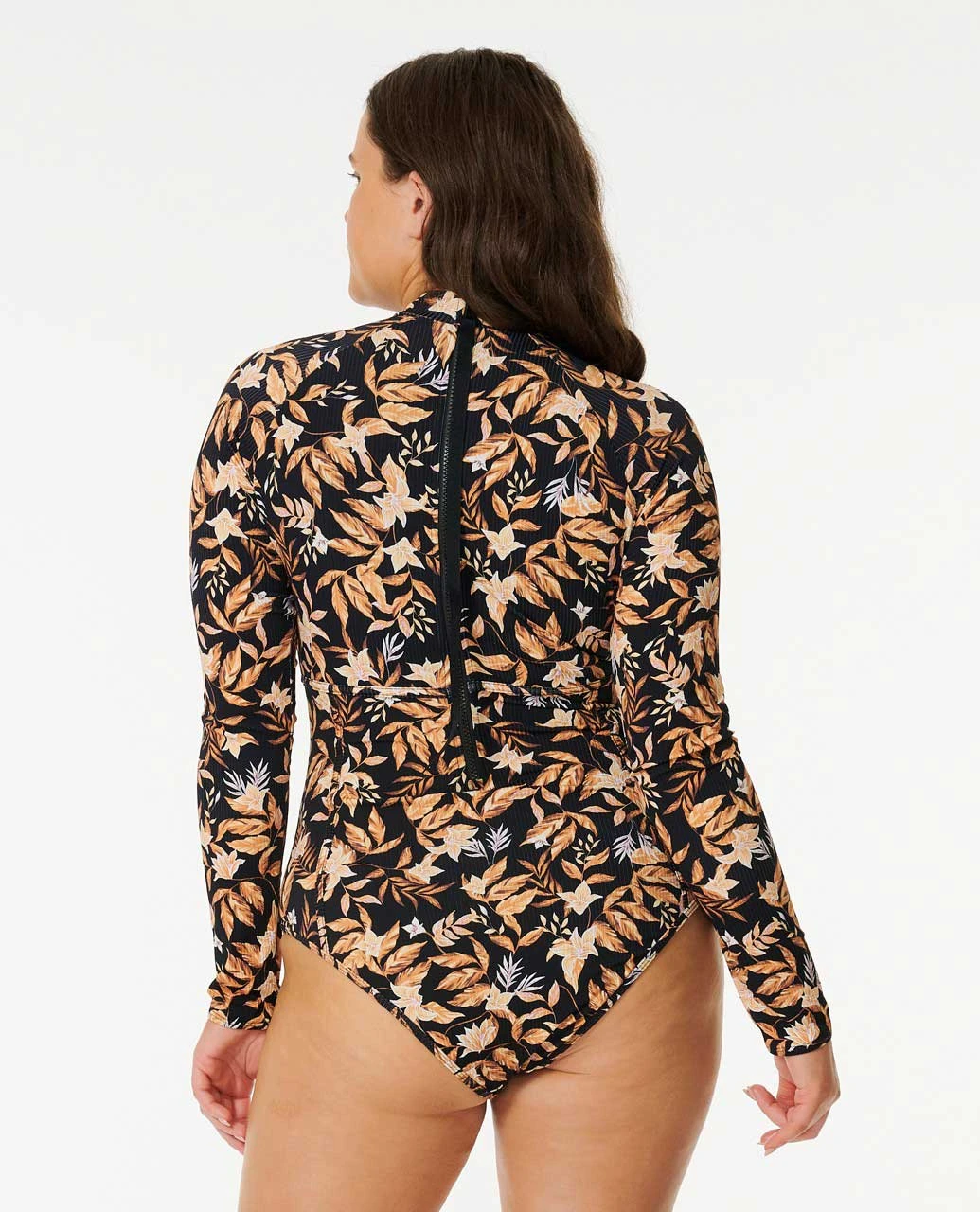 Stay protected and stylish with the La Isla Surf Suit. Made from stretch polyamide rib fabric, this long-sleeve swimwear features a 5-gauge zip at the back for easy wear. The keyhole detail at the front adds a trendy touch, while the edge binding ensures durability. With its good support and comfortable fabric, this surf suit is perfect for hitting the waves or lounging by the beach.