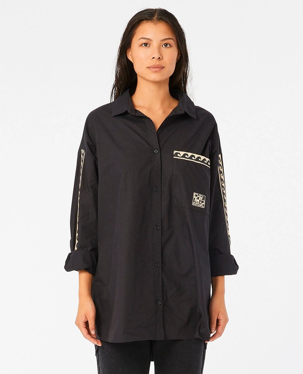 A fresh take on 90s streetwear, the New Wave Shirt is a rad women’s button through top. Featuring a front pocket with woven taping and badge details that give a pop of colour. Designed in a relaxed fit for ultimate comfort and a flowy, mellow vibe.
