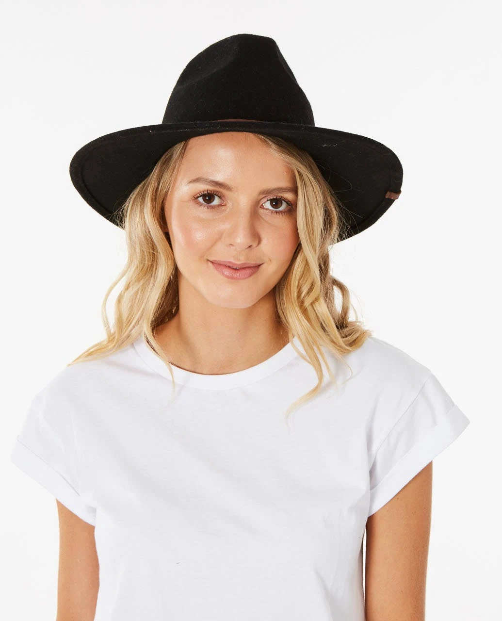 Features: Moulded structured felt panama, Stiffened brim, Leather headband, Leather clamp, Wool Felt.