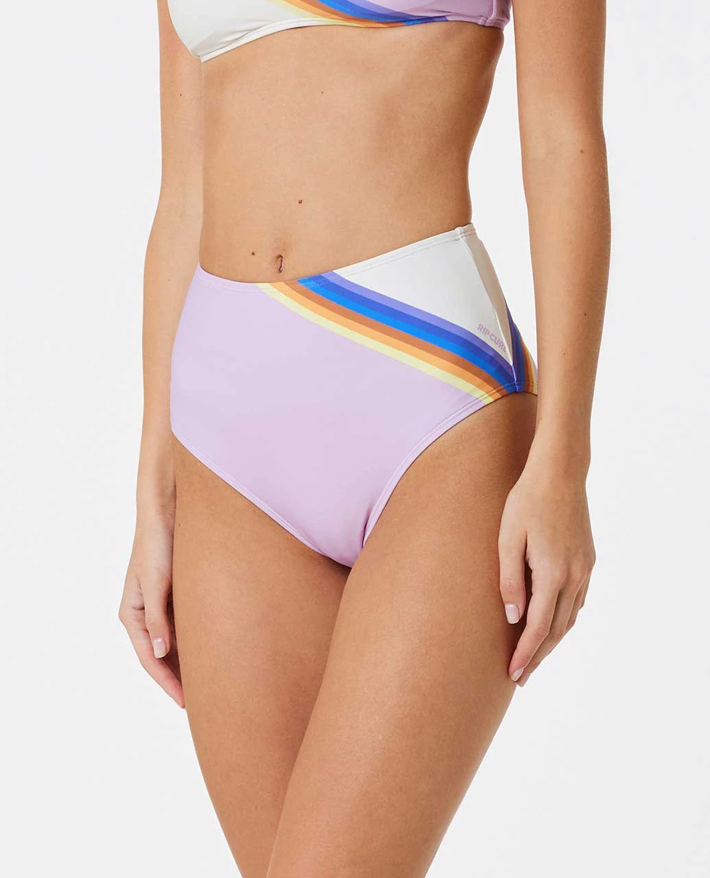 Feel confident and comfortable in the Sunrise Stripe High Waisted Good Coverage Bikini Bottom. Crafted from microfibre Lycra® Extra Life™ fabric, this high-rise swimwear provides good coverage and features a flattering high-waisted design. The placement print and printed logo add a fashionable touch, making this bikini bottom a stylish choice for any beach or poolside outing.
